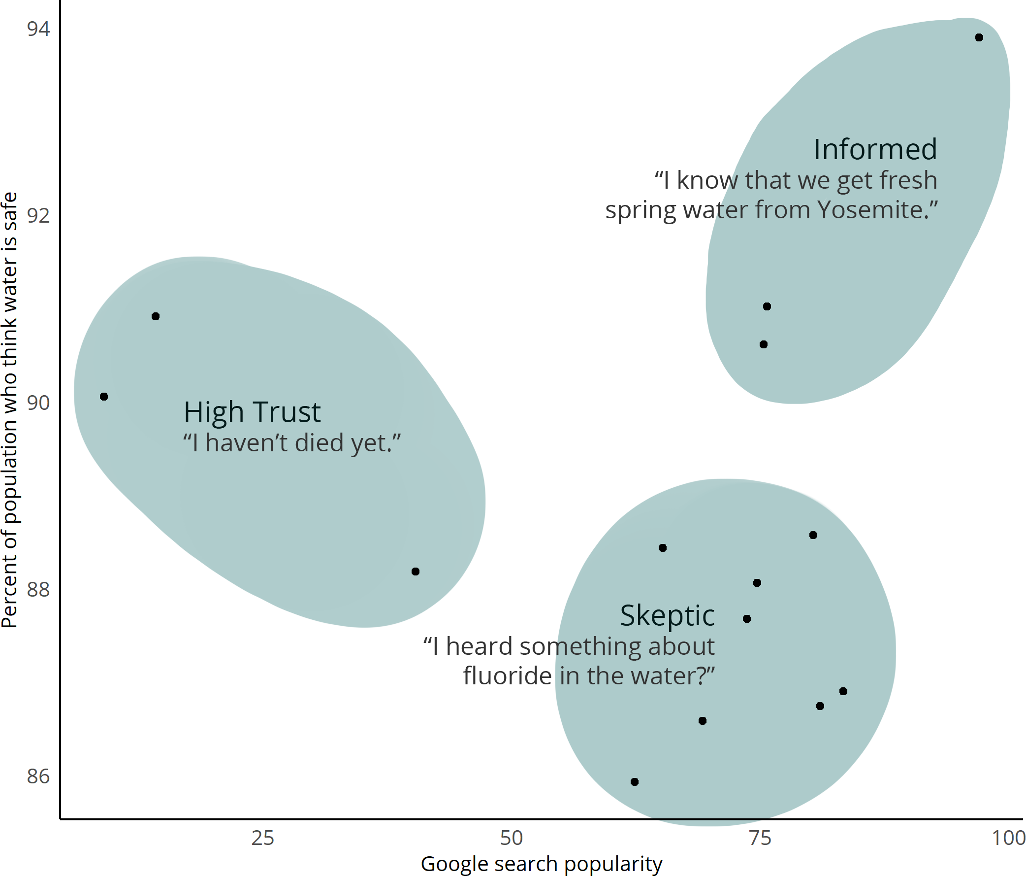 Based on data from the 2015 American Housing Survey (AHS), researchers at Amherst College and UCLA identified sociodemographic factors that influence individuals’ perception of tap water (Javidi, 2018). The Census Bureau releases individual responses to the questionnaire, which contains multiple demographic factors and a yes or no question on whether a respondent thinks their tap water is safe. If we knew the counties of each AHS respondent, we would be able to map these responses directly, however, the government does not release any personally identifiable data with these responses to protect individuals’ privacy.